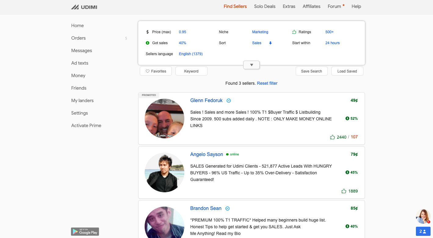 Udimi es una red de Solo Ads o Anuncios en Solitario que lleva años en el mercado conectando vendedores con compradores. Aquí puedes conseguir clics de calidad para diversos nichos en cosa de minutos.