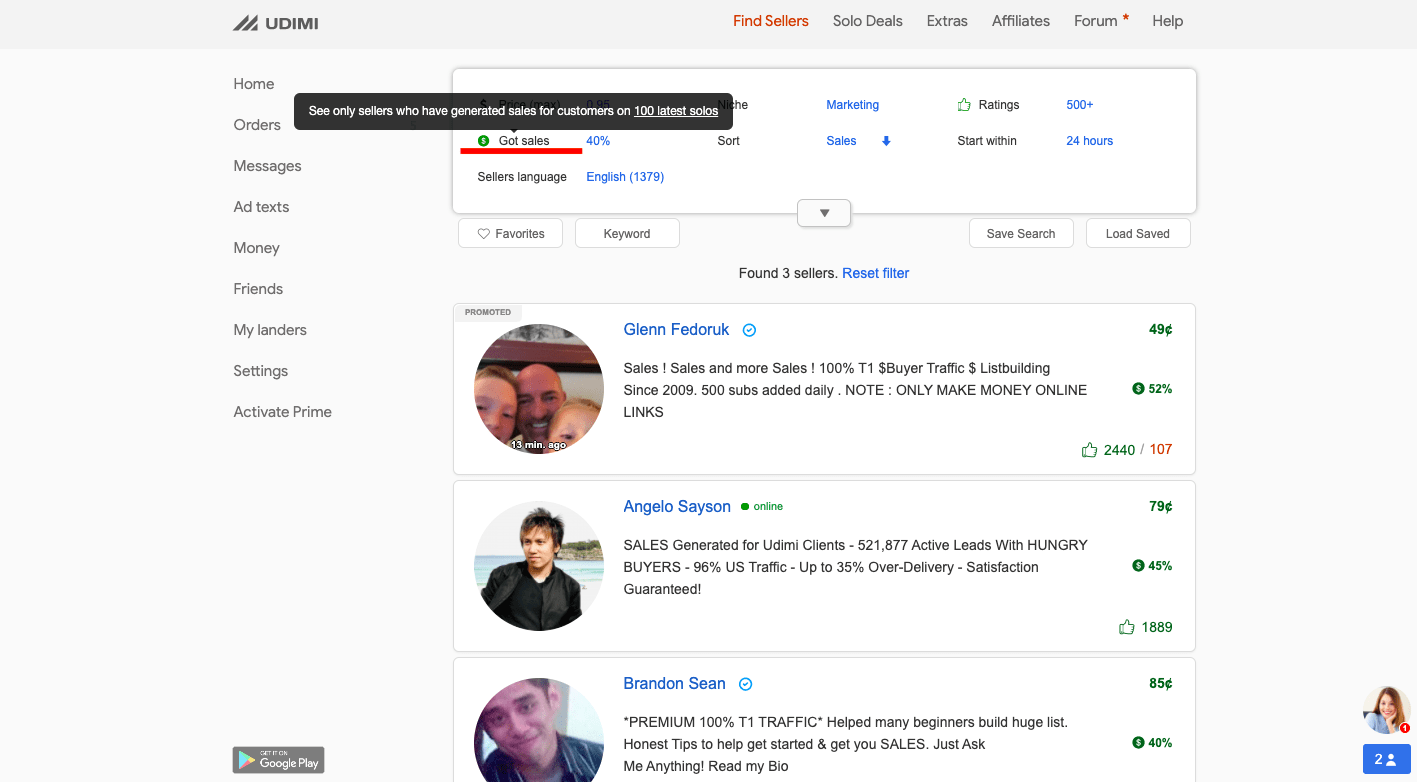 Pero lo que realmente hace que Udimi sea diferente de otros mercados es el hecho de que cada Solo Ad que compres se te entregará. Y si no estás satisfecho, también tienes la opción de crear una disputa con el vendedor.