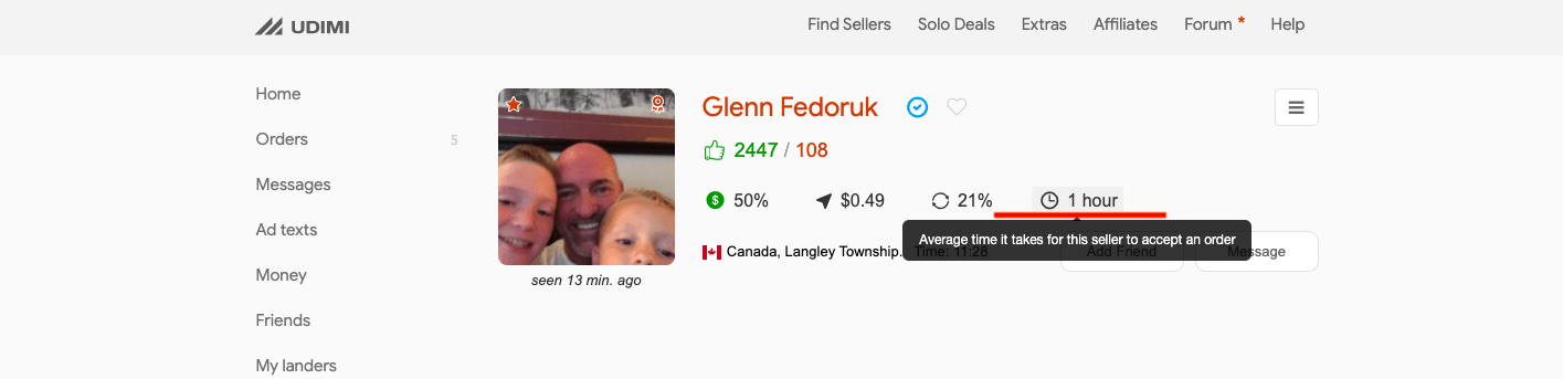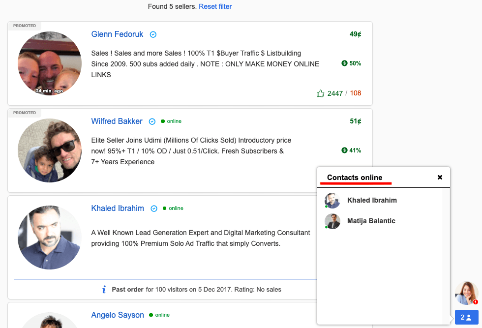 Desde aquí puedes hacer todo, desde encontrar vendedores, acceder al foro de Udimi, ver los pedidos de Solo Ads que tengas y entrar en contacto con los vendedores mediante el chat que se encuentra en la parte inferior derecha..