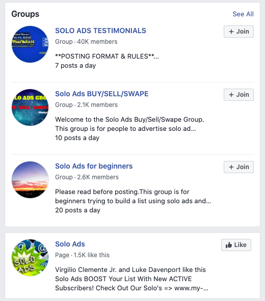 Paso 1: Únete a grupos de Solo Ads y Solo Ads en Español en Facebook.