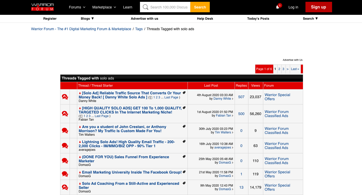 Warrior Forum una de las comunidades y mercados de marketing en Internet más grandes del mundo. Este sitio es un excelente lugar para encontrar vendedores y compradores de Solo Ads y otras cosas relacionadas con marketing